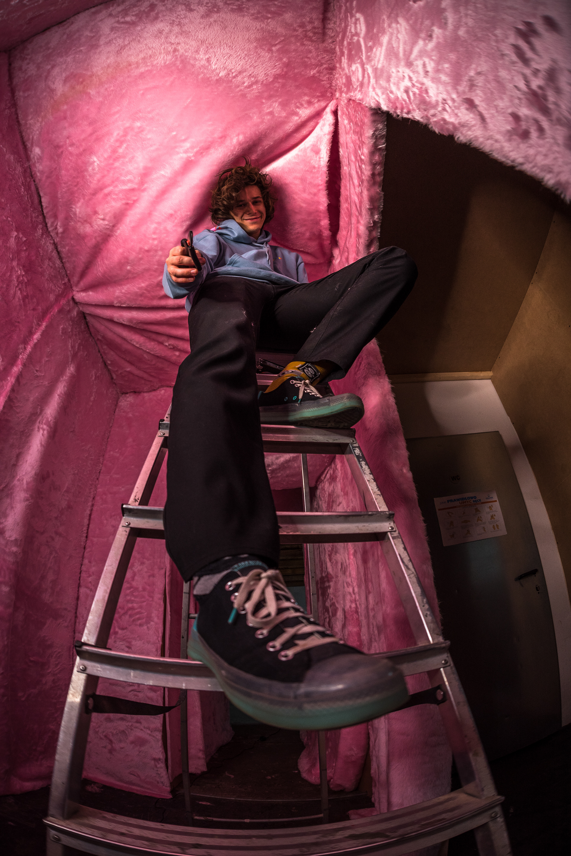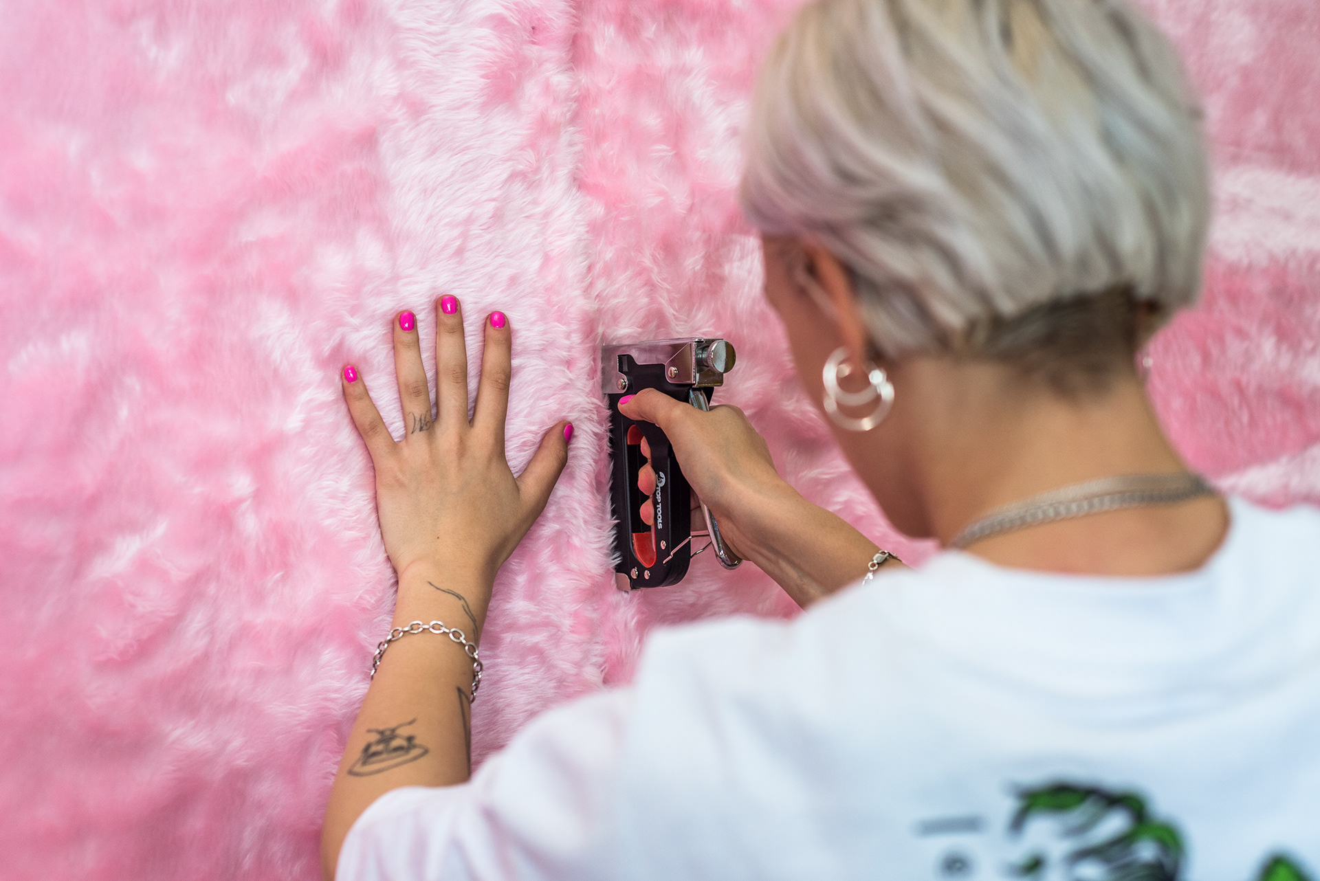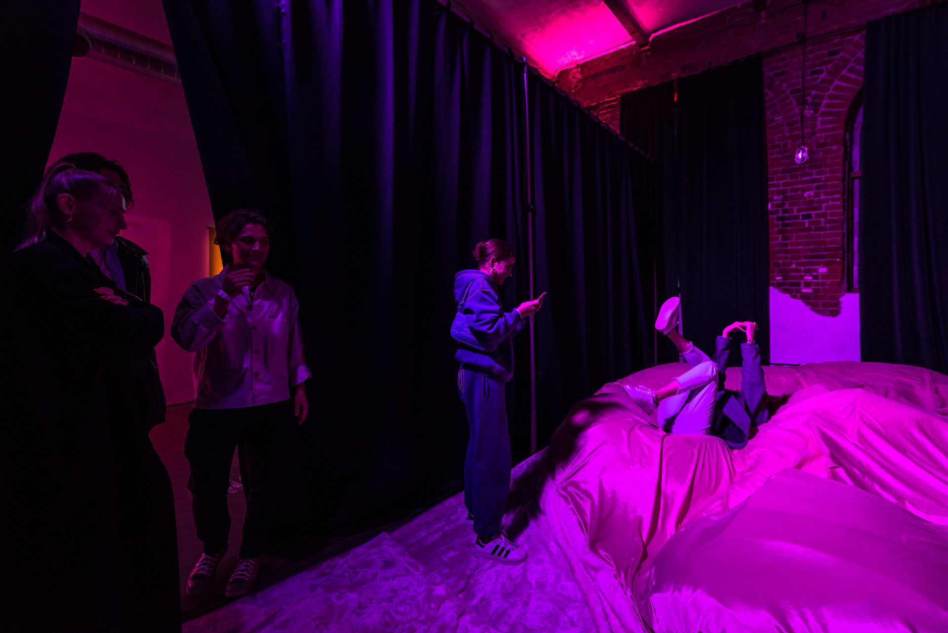 In addition to the exhibition, we have created art installations together. The comfort room is meant to be an oasis of peace and security. The pink tunnel is intended to allow a direct experience of comfort through sensory impressions.